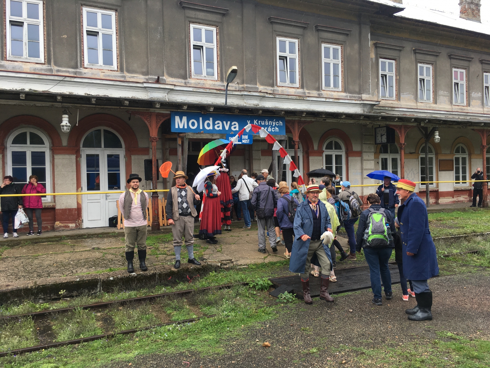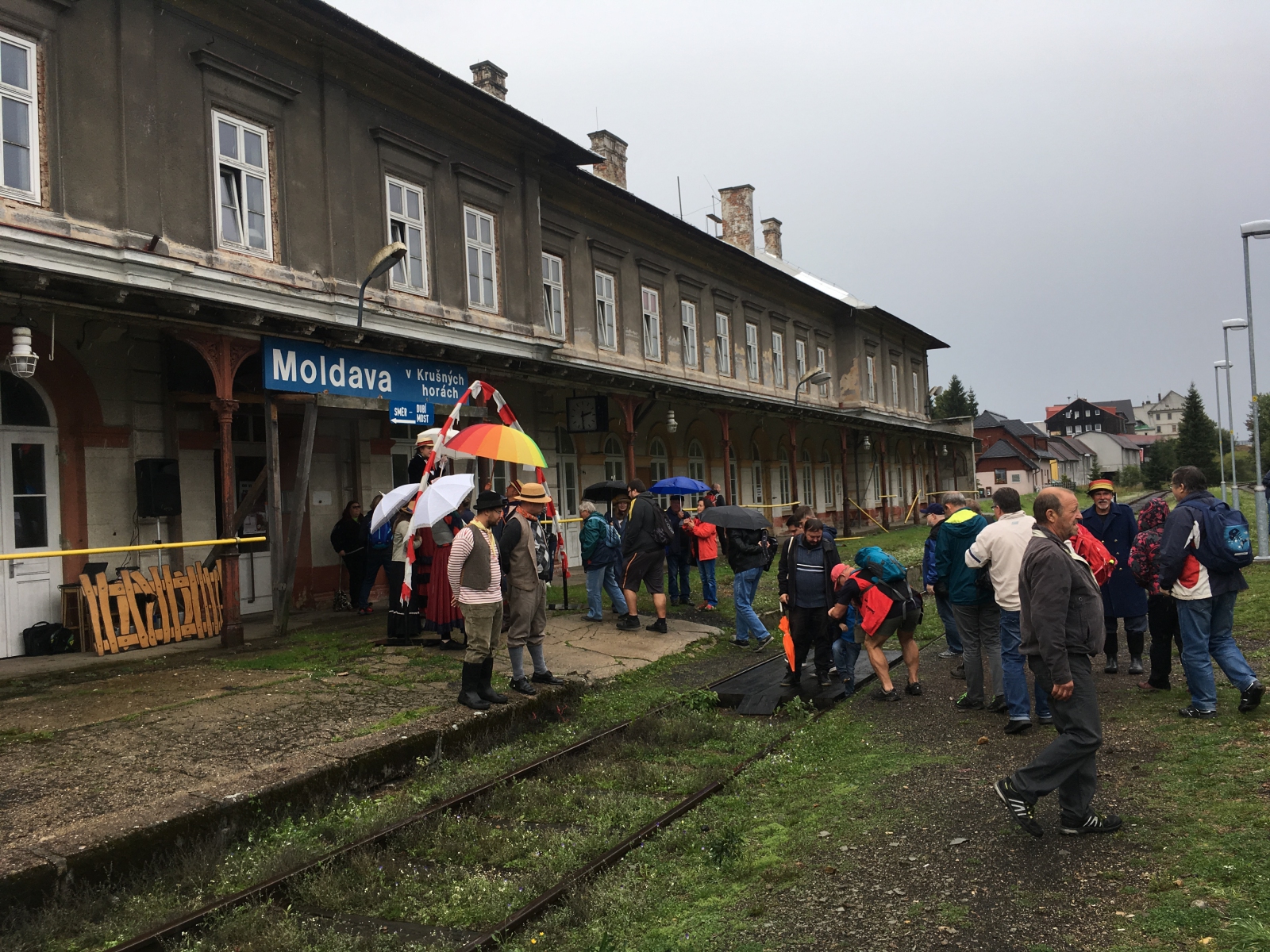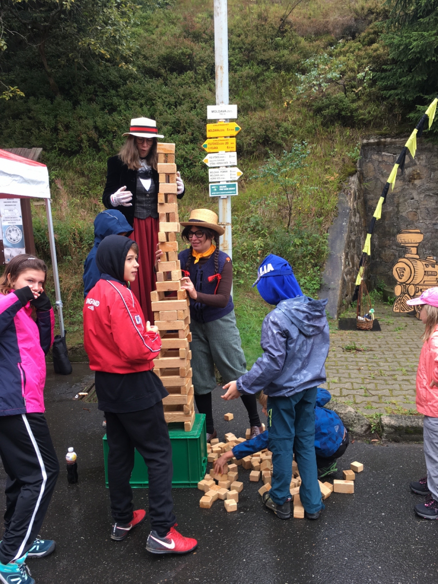 Deštivé sobotní ráno! Výhledy slibují zlepšení, ale nám je jasné, že následujících 12 hodin bude na nás! Od osmé hodiny ranní už hrajeme podkresy pro první vlak na Moldavě. Ano, celý den v duchu nostalgickém s výhledem do budoucnosti: Propojení trati Moldavské a Freibergské dráhy, kyvadlové busy po hodině, 3 směry, 4 kapely, 5 soutěžních stanovišť a 6 hodin programu pro neodrazené turisty – to byla akce, kterou jsme svorně s kapelou Hadraplán označili za nultý ročník Moldavských slavností I přes avizované hodinové zpoždění historického speciálu se nakonec ve 12.20 Moldava dočkala – na dvěstě turistů se vyrojilo na vrcholcích Krušných hor, aby si vybralo další směr – Rechenberg, kde probíhaly česko-německé hudební slavnosti, na Fláje, kde se konal Den otevřených dveří nového Infocentra, a po Moldavě, kde jim posloužilo občerstvení, divadlo i hudebníci! Děkujeme obci Moldava za pozvání!