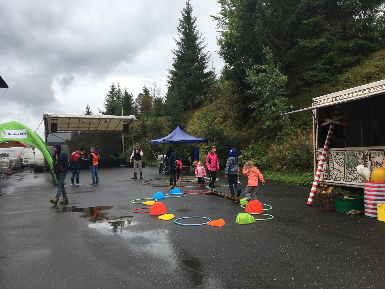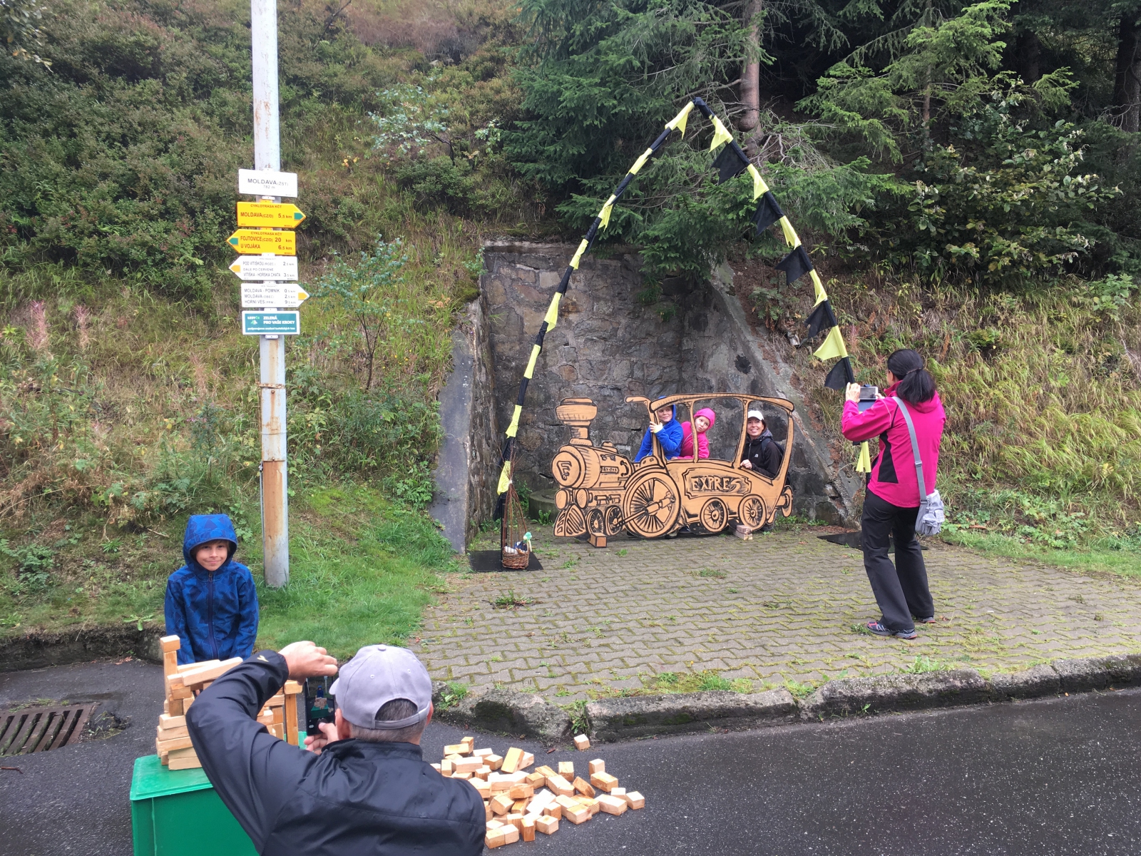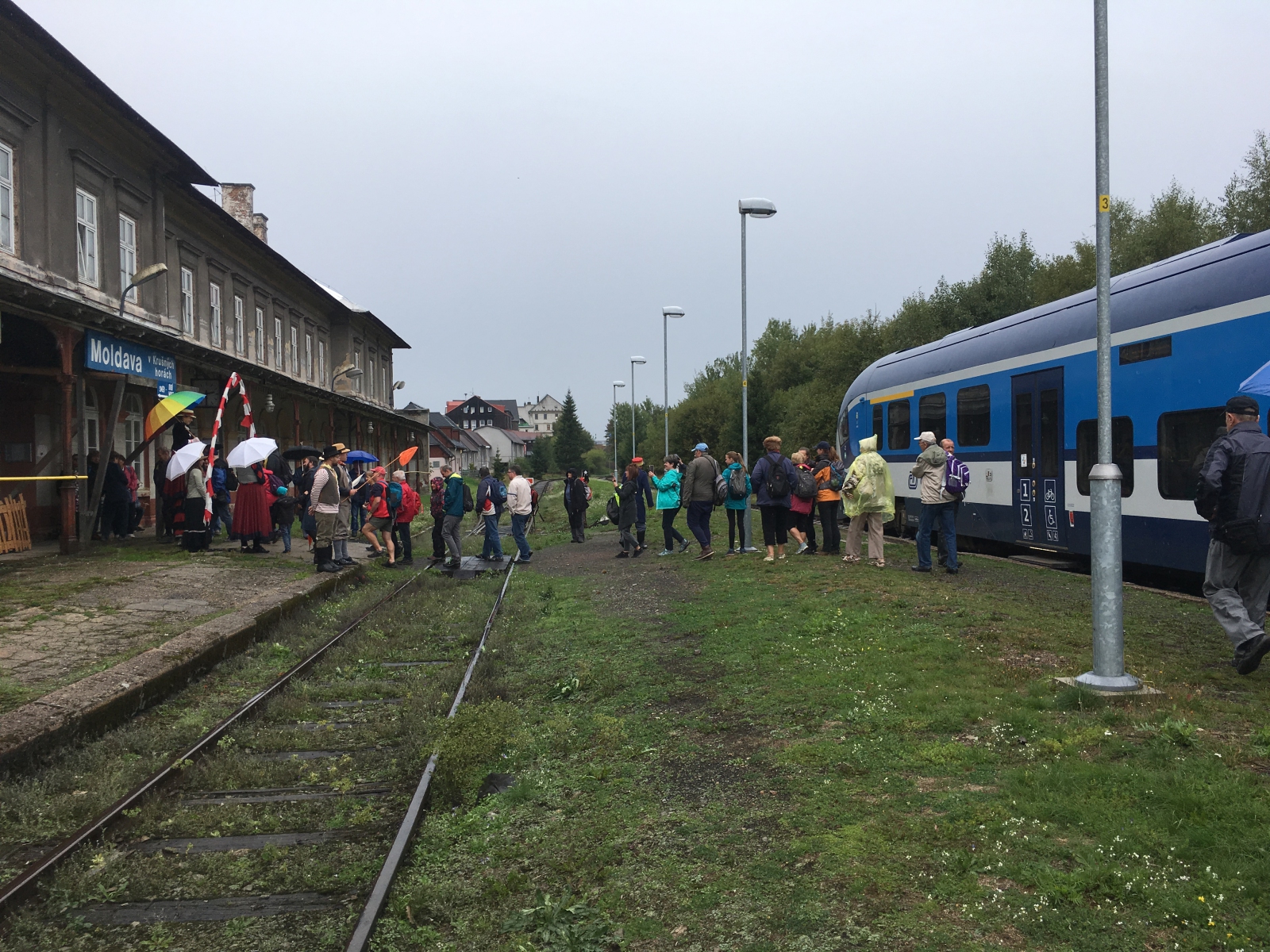 Deštivé sobotní ráno! Výhledy slibují zlepšení, ale nám je jasné, že následujících 12 hodin bude na nás! Od osmé hodiny ranní už hrajeme podkresy pro první vlak na Moldavě. Ano, celý den v duchu nostalgickém s výhledem do budoucnosti: Propojení trati Moldavské a Freibergské dráhy, kyvadlové busy po hodině, 3 směry, 4 kapely, 5 soutěžních stanovišť a 6 hodin programu pro neodrazené turisty – to byla akce, kterou jsme svorně s kapelou Hadraplán označili za nultý ročník Moldavských slavností I přes avizované hodinové zpoždění historického speciálu se nakonec ve 12.20 Moldava dočkala – na dvěstě turistů se vyrojilo na vrcholcích Krušných hor, aby si vybralo další směr – Rechenberg, kde probíhaly česko-německé hudební slavnosti, na Fláje, kde se konal Den otevřených dveří nového Infocentra, a po Moldavě, kde jim posloužilo občerstvení, divadlo i hudebníci! Děkujeme obci Moldava za pozvání!